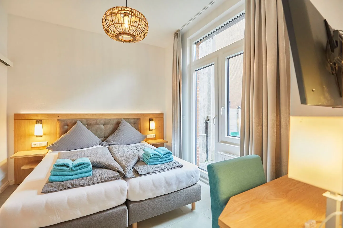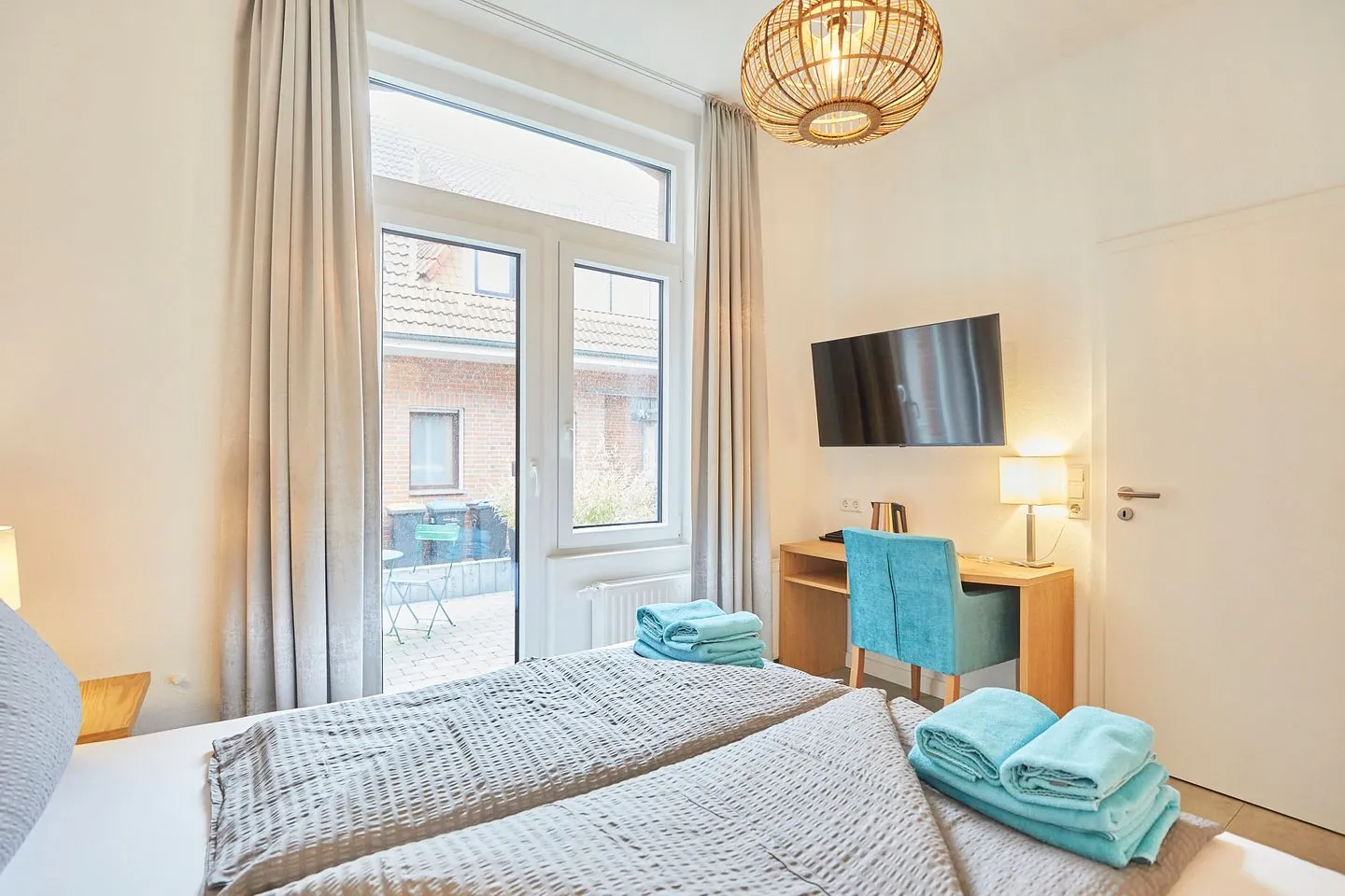Das moderne Appartmenthaus Antina bietet sechs gemütliche Zimmer für jeweils zwei Personen. Jedes Appartment verfügt über ein Duschbad mit bodentiefer Duschtasse und eine kleine Teestation mit Wasserkocher. Die hochwertigen Boxspringbetten versprechen erholsame Nachtruhe. Bettwäsche, Handtücher und Endreinigung sind im Mietpreis inklusive.
