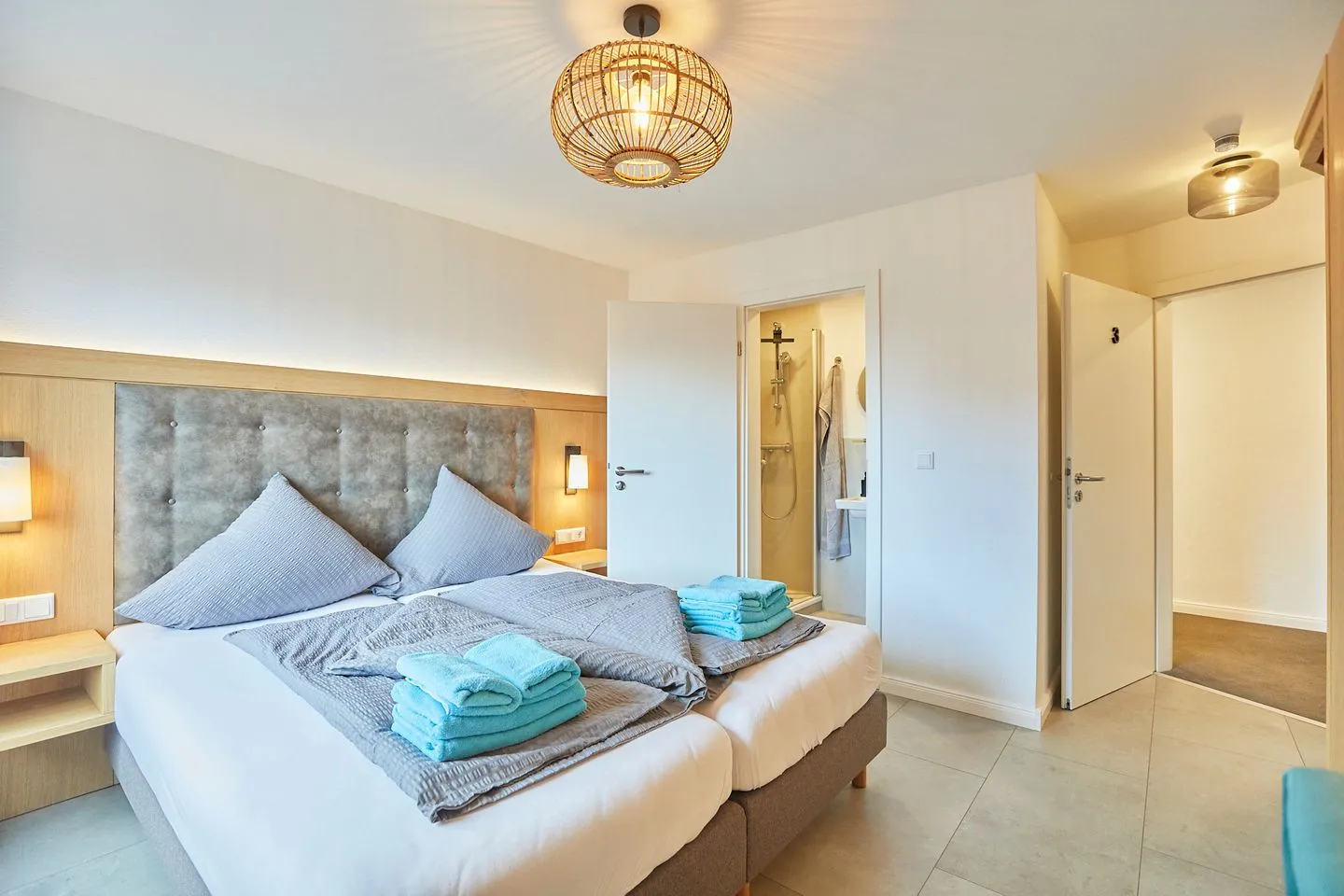 Das moderne Appartmenthaus Antina bietet sechs gemütliche Zimmer für jeweils zwei Personen. Jedes Appartment verfügt über ein Duschbad mit bodentiefer Duschtasse und eine kleine Teestation mit Wasserkocher. Die hochwertigen Boxspringbetten versprechen erholsame Nachtruhe. Bettwäsche, Handtücher und Endreinigung sind im Mietpreis inklusive.