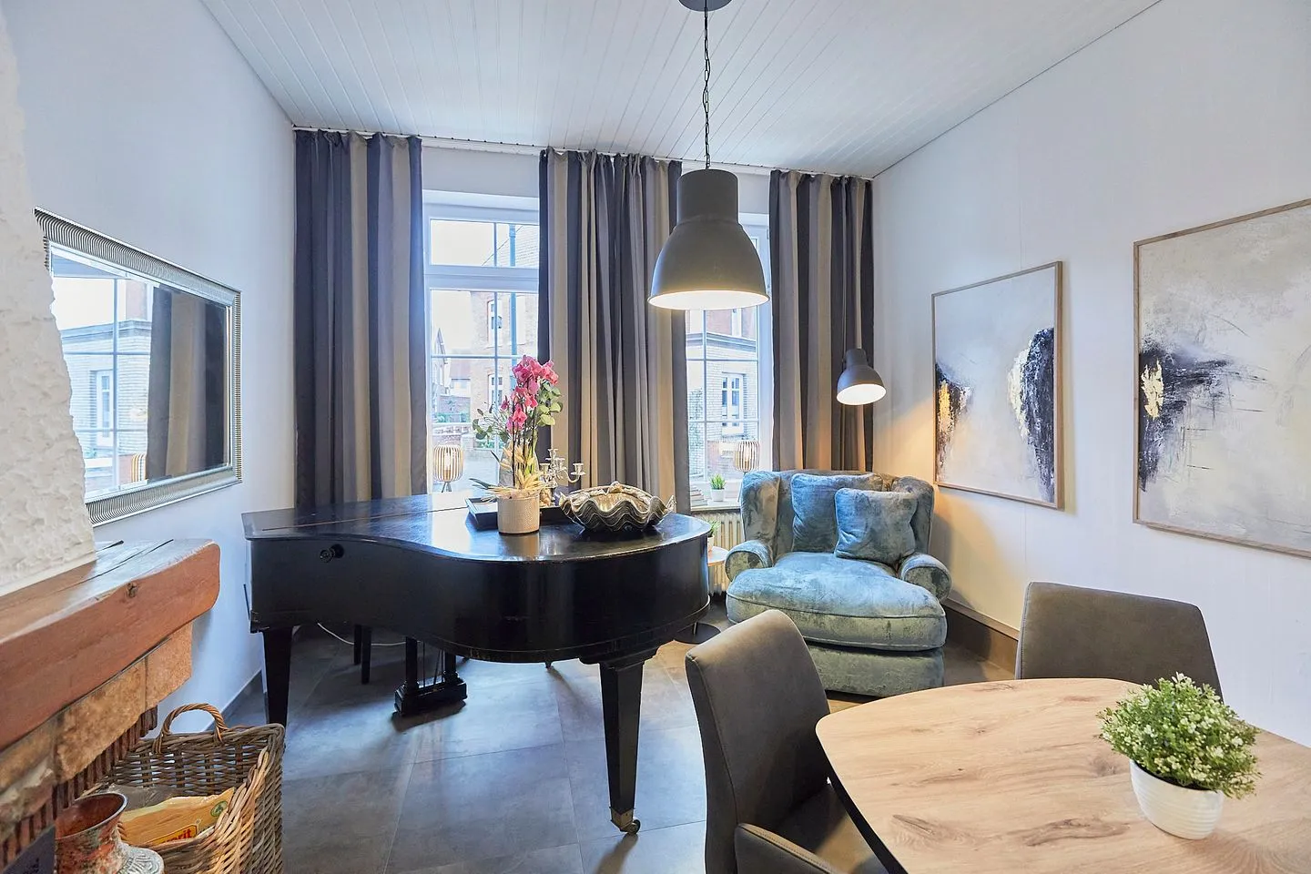 Vor dem Haus lädt eine Gemeinschaftsterrasse zum Verweilen ein, innerhalb des Hauses steht den Gästen zusätzlich das Kaminzimmer als gemeinschaftlicher Aufenthaltsraum zur Verfügung.