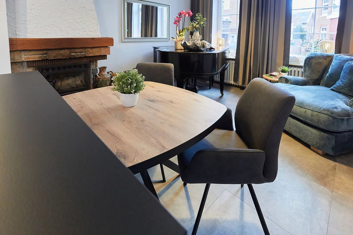 Vor dem Haus lädt eine Gemeinschaftsterrasse zum Verweilen ein, innerhalb des Hauses steht den Gästen zusätzlich das Kaminzimmer als gemeinschaftlicher Aufenthaltsraum zur Verfügung.
